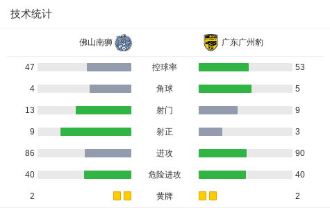 北京时间3月21日中国足球甲级联赛 联赛 第2轮,佛山南狮主场对阵广东广州豹。佛山南狮加布里埃尔-比斯波破门,钱宇淼破门。广东广州豹尼康破门,韩轩破门,图多列破门。最终比分佛山南狮 2-3 广东广州豹。