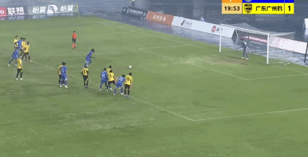 第5分钟,尼康外围起脚劲射破门,广东广州豹1-0佛山南狮