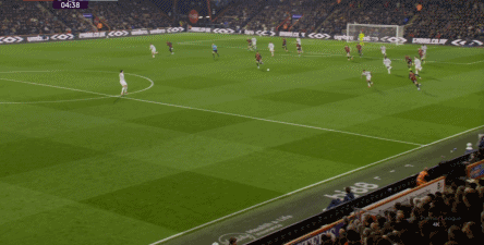 你不能想着用一个边锋和中锋来拼出一个完美的前锋,因为布鲁诺的防守意识很难支撑他做进攻第三人,也就是防守第八人,这一点在曼联丢的第一球就能看到:
