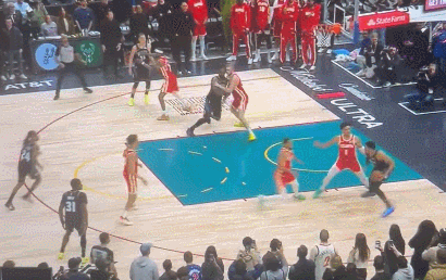 这时候,全场观众都屏住了呼吸。 第一波:托拜厄斯-哈里斯在底线来了一个后仰跳投。动作很帅,可惜力气大了点,球弹筐而出。 第二波:就在大家以为凉了的时候,活塞中锋杰伦-杜伦神兵降临,抢到了进攻篮板!此时他距离篮筐近在咫尺,只要轻轻一补……