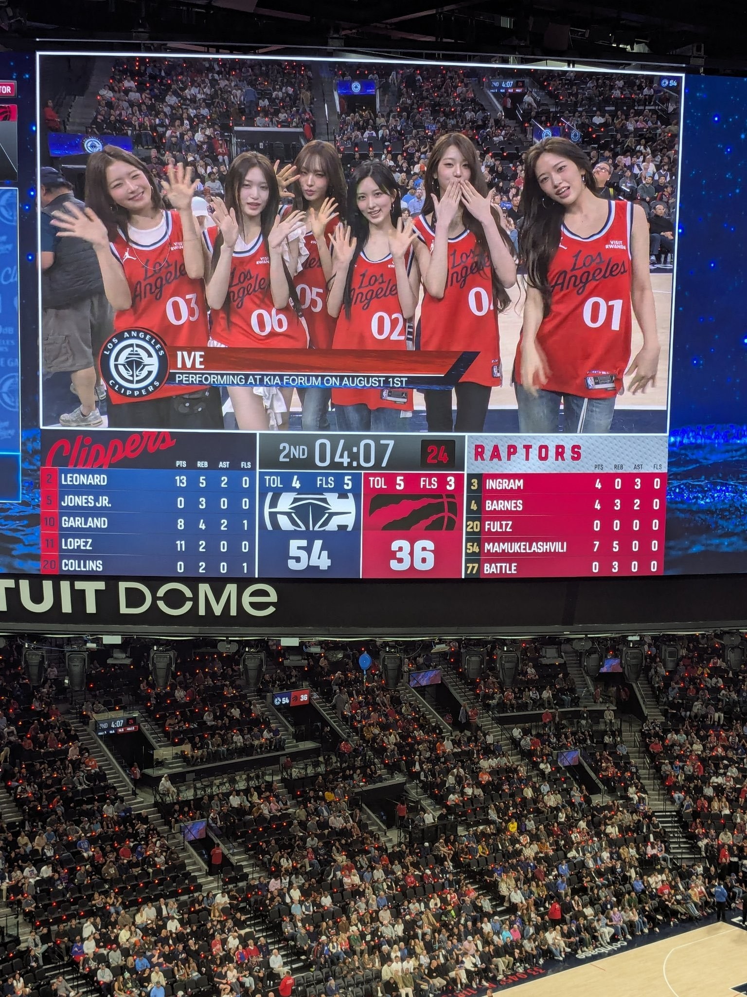 北京时间3月26日,快船在主场战胜猛龙。本场比赛,韩国女团IVE受邀前往现场观赛。