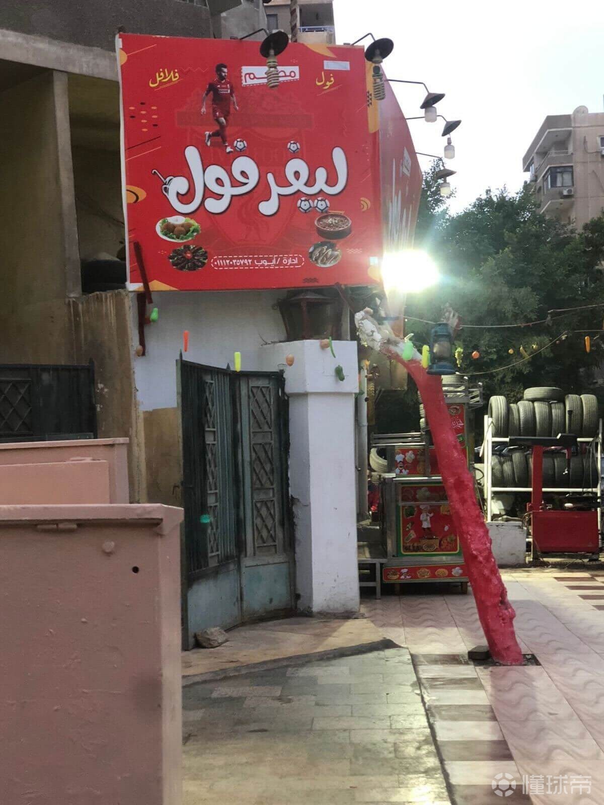 最能说明这一切的,是开罗纳赛尔城一家售卖蚕豆泥和炸鹰嘴豆饼的小食店。这家店用阿拉伯语取名为“Liverfool”,巧妙融合了利物浦队名与自家菜品,店招最上方便是萨拉赫的照片。