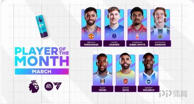今日,英超联赛官方公布了3月最佳球员候选,B费、拉亚、维尔贝克、安东尼·戈登等7将入选。