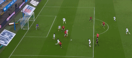 第10分钟,默尼耶凌空抽射,皮球偏出立柱