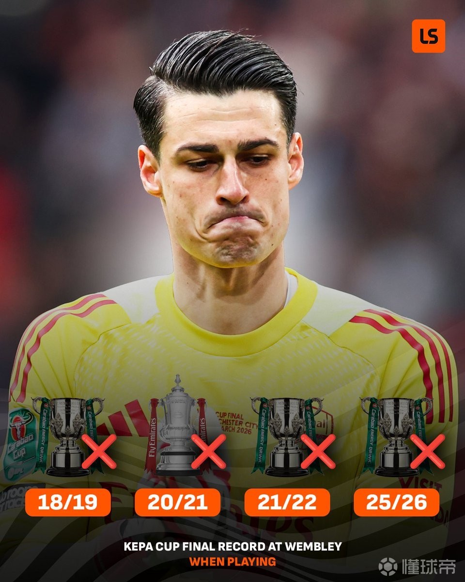 魔咒,凯帕在温布利4次出战杯赛决赛全部失利